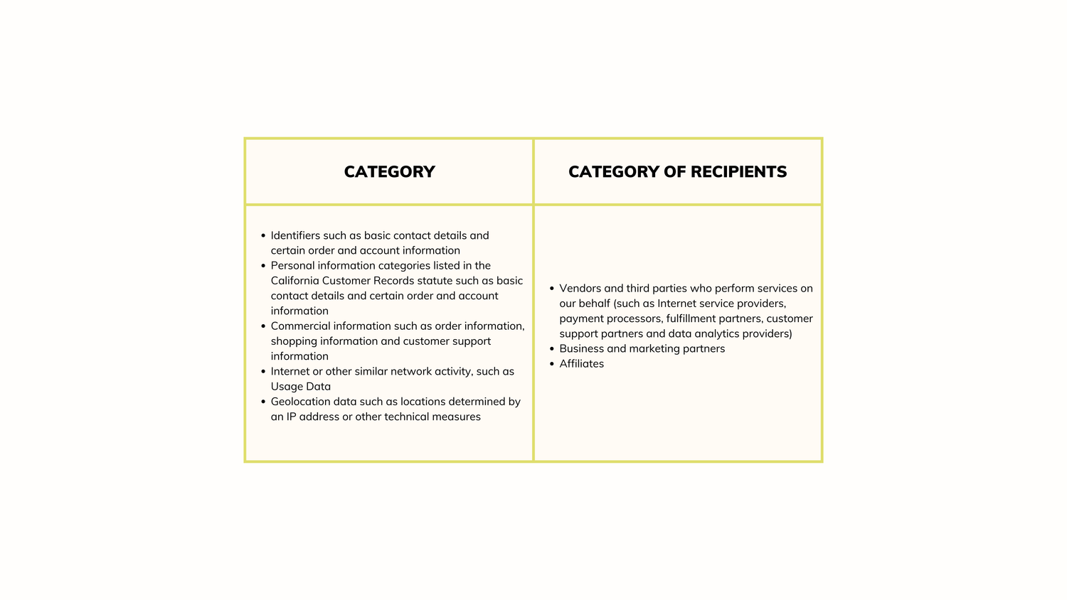 - Our payment processors, who collect payment information (e.g., bank account, credit or debit card information, billing address) to process your payment in order to fulfill your orders and provide you with products or services you have requested, in order to perform our contract with you.